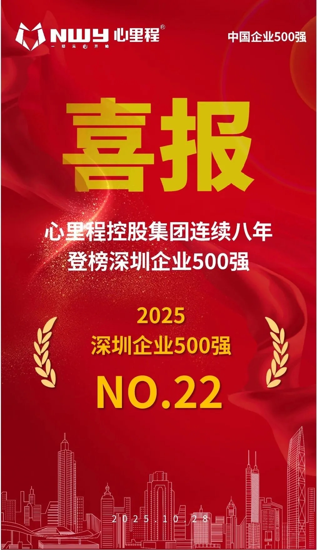 連續(xù)八年登榜!心里程集團榮登2025深圳企業(yè)500強第22位(附全榜單)