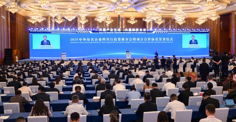 期間,2025中外知名企業(yè)四川行重要活動——知名企業(yè)投資四川懇談會在成都同期舉行。會議由四川省人民政府主辦,旨在搭建企業(yè)與省直部門、市(州)政府間“面對面、點對點”的高效交流平臺,對接投資合作、精準回應企業(yè)訴求。四川省副省長楊興平出席懇談會并講話。省政府副秘書長曹代學,省經濟合作局局長吳曉曦,省經濟合作局黨組副書記、副局長余輝,省發(fā)展改革委二級巡視員汪友才,經濟和信息化廳一級巡視員馮錦花,科技廳副廳長敬茂明,財政廳黨組成員帥旭,自然資源廳副廳長鄧斌,生態(tài)環(huán)境廳副廳長高潔,商務廳一級巡視員易旸,省衛(wèi)生健康委副主任趙汝鵬,省市場監(jiān)管局副局長董若潔,四川省稅務局總審計師李嵐,成都市人民政府副市長許興國,瀘州市人民政府副市長任曉波,綿陽市政協副主席許小君,廣元市人民政府副市長吳勇,遂寧市人民政府副市長許文強,廣安市人民政府副市長張偉,達州市人民政府副市長唐志坤,眉山市委常委、市人民政府副市長賈生甲等領導參加活動。