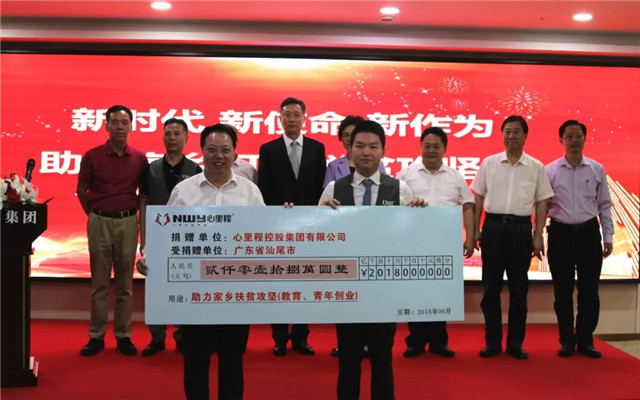 從創(chuàng)業(yè)的第一天起,始終堅持不忘初心,積極履行社會責任,富而思源,富而思進,熱心公益慈善事業(yè),真心回報社會。2017年,心里程控股集團向深圳市慈善會捐款2000萬元,就在不久前,在廣東扶貧濟困日即將到來之際,我們又向家鄉(xiāng)汕尾市捐款2018萬元,主要用于資助青年創(chuàng)業(yè)和教育扶貧。